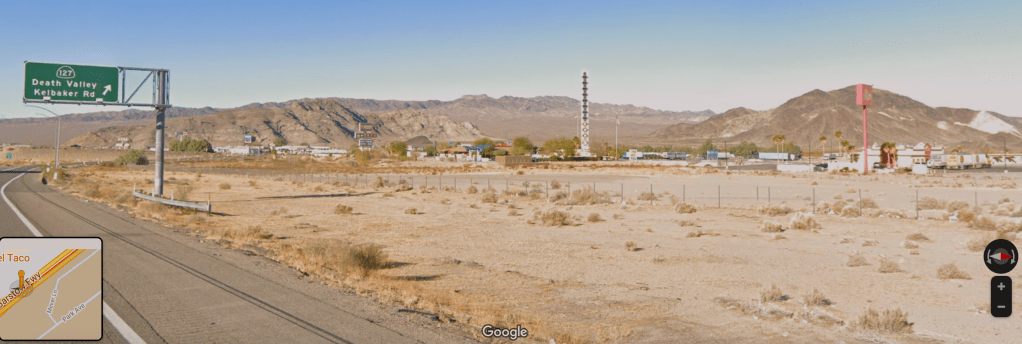 As we continued on Interstate 15, we passed Baker, CA. As we approached the town, we noticed a very tall thermometer. It turns out this is the World’s tallest thermometer, standing at 134 feet tall, which represents the hottest temperature recorded in Death Valley, 134 degrees. Baker, CA is referred to as the gateway to Death Valley, located 101-miles north, and sits midway between Barstow, CA and Primm, NV.