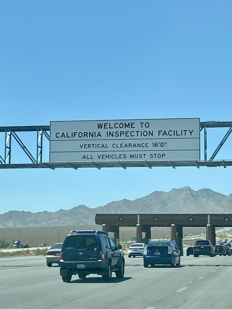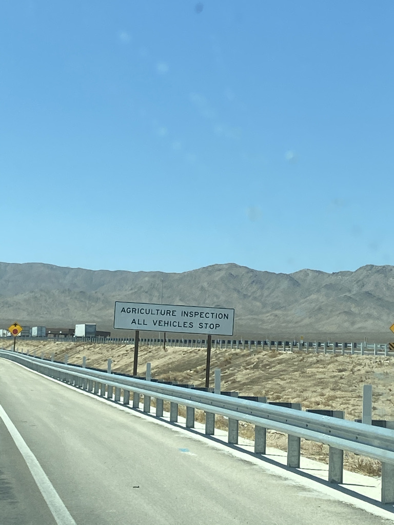 Immediately after this unusual sight, we came to another unusual site, one of several California Agricultural Inspection Stations. We read about this and were prepared as we made our way through the inspection center. The inspection stations check all vehicles and commodities to ensure they are pest-free and meet all regulatory requirements. The purpose is to protect the California agricultural industry from invasive pests.