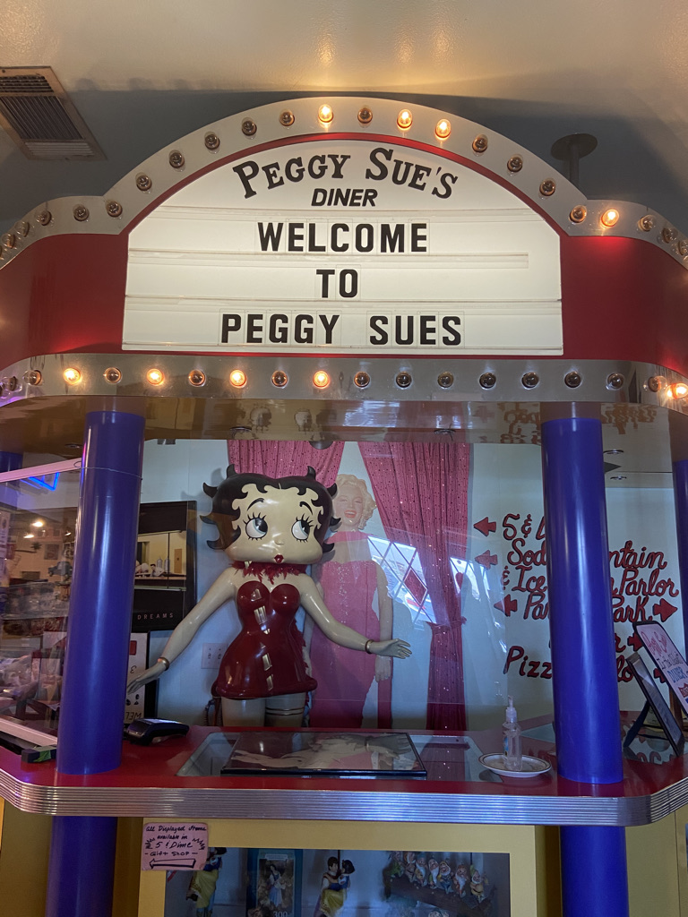 Peggy Sue’s Diner is a popular roadside stop decorated with movie and TV memorabilia. I read the Google reviews, and with a 4.5-star rating and over 10,000 reviews, I figured the food must be pretty good.