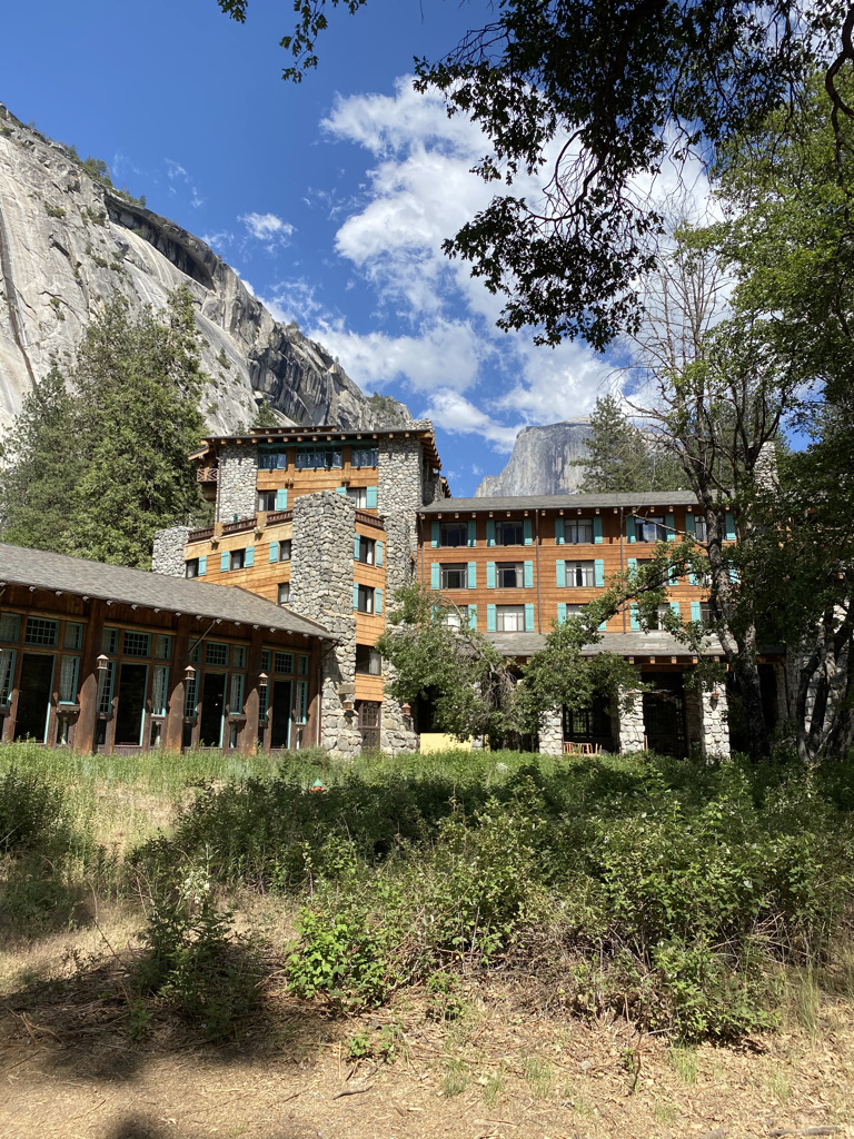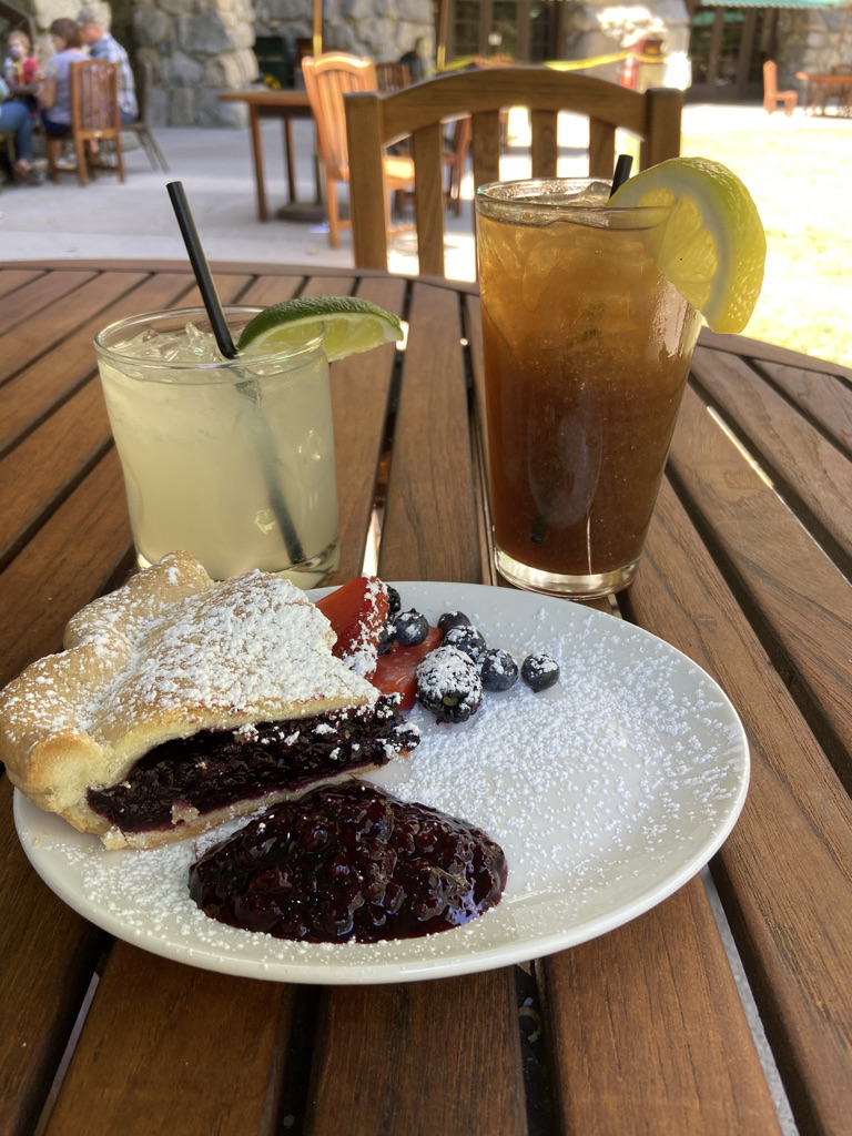 We then made our way to Ahwahnee Hotel, which is listed on the National Register of Historic Places and is a National Historic Landmark. The hotel architecture is designed to blend in with the natural beauty of the park. More than 5,000 tons of stone, 1,000 tons of steel, and 30,000 feet of lumber were transported through the mountains to create the hotel. This is a luxury hotel located in the heart of the park. If your budget allows ($$$$), a stay here would make for an unforgettable experience! We enjoyed drinks and a piece of boysenberry pie while sitting on the back patio.