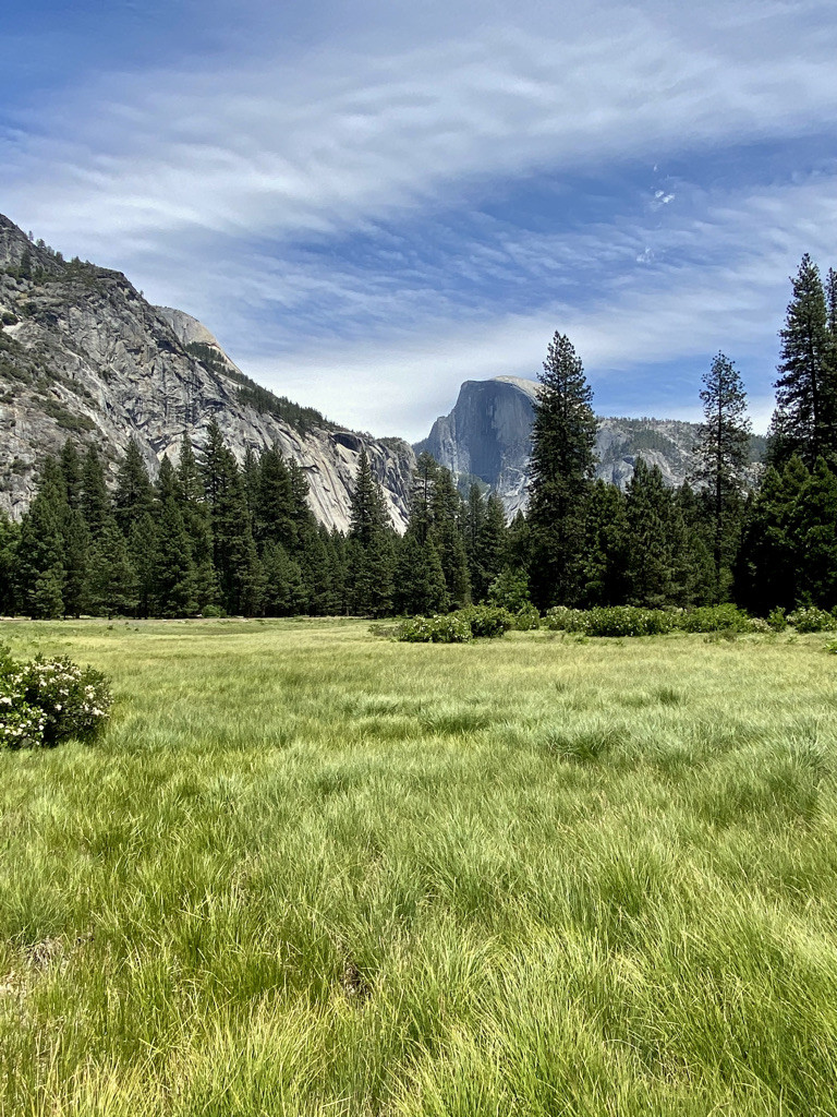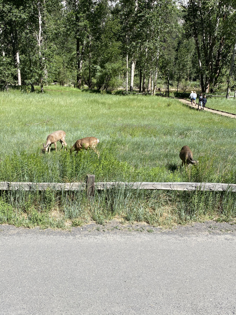 For our third and final day in the park, we arrived late morning and parked along the meadow. We were greeted by deer grazing along the walkway as we made our way west to Swinging Bridge. We had a picnic lunch along the river with views of Lower Yosemite Falls. Then we walked east along the river to Berg Bridge, making our way through the meadow back to our truck.