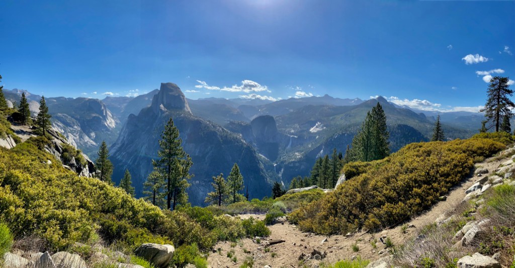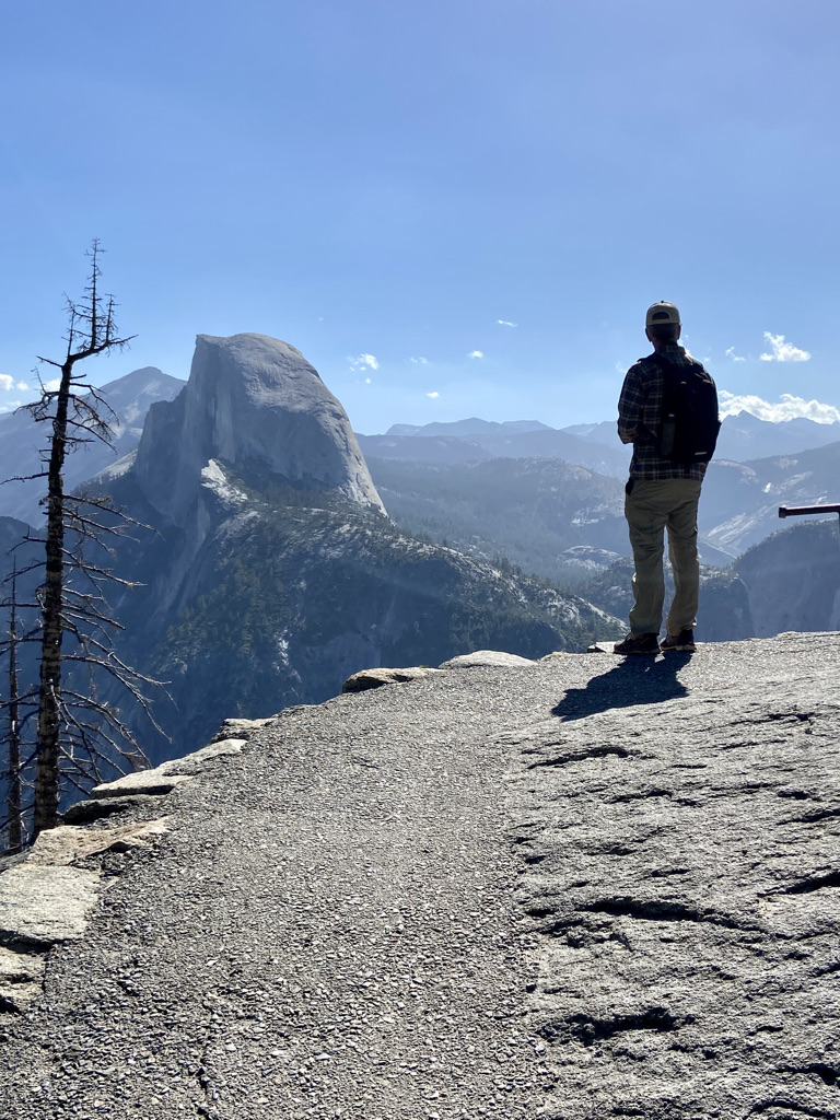 - We stopped at Washburn Point for more views and then stopped at Sentinel Dome/Taft Point Trailhead. We hiked the Sentinel Dome Trail, a 2.1-mile out and back trail. It was a moderate hike with a steep climb at the end to reach the peak of Sentinel Dome, but the views from this vantage point are fantastic! This was my favorite hike! Parking fills fast and in 2022 Glacier Point Road will be closed for road work. Be sure to check the NPS website before heading out and plan accordingly.