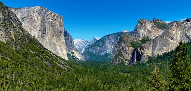 - Our first stop was at Tunnel View which is on the way to Glacier Point Road. This is an iconic stop providing views into Yosemite Valley with El Capitan, Bridalveil Falls, and Half Dome in the distance. Such a beautiful sight!