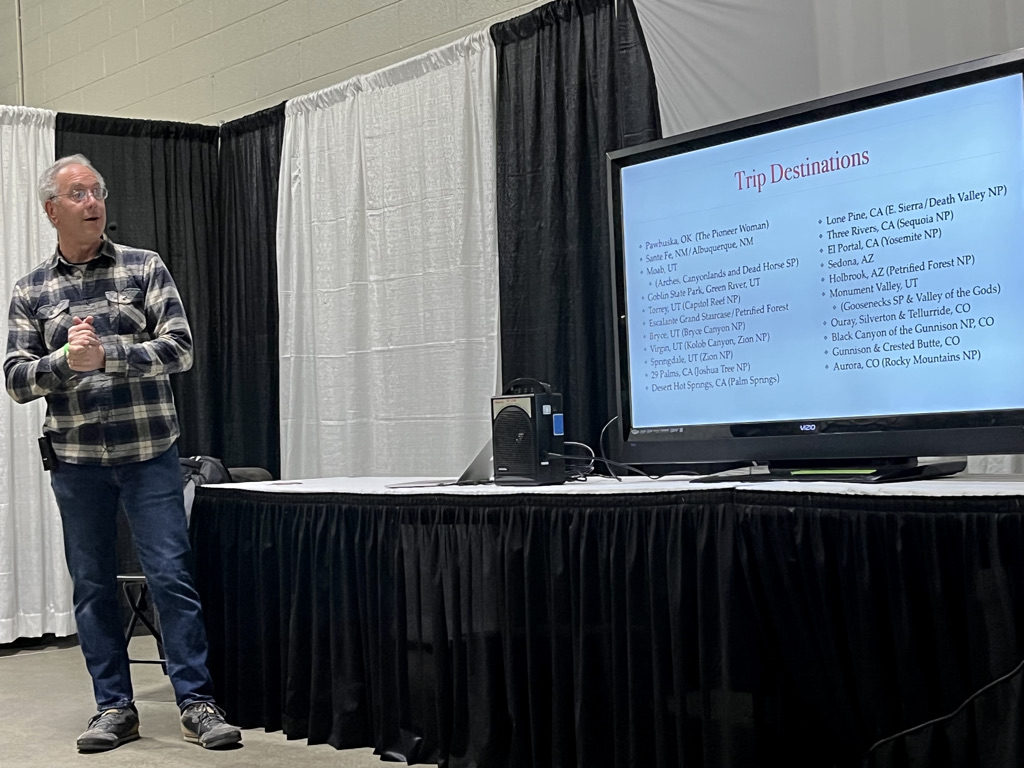 In the RV Industry? Are you looking for a friendly, knowledgeable speaker that can provide value to your Trade Show or Open House? I created a one-hour seminar on our three-month cross-country RV travel where I share our stories, experiences, trip destination pictures, and address questions from the audience. Contact me if you are interested in booking this seminar. If you are interested in a seminar on a specific RV topic, I can create one based on your desired subject.